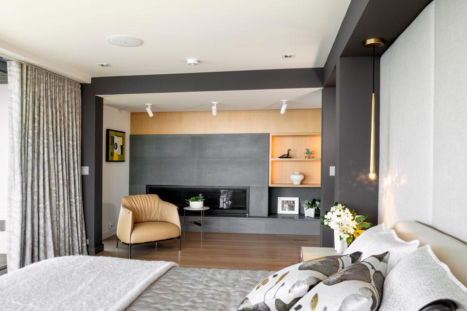 This new contemporary home built vertically on a challenging site, takes advantage of the spectacular 180 degree views of Puget Sound with mountain and water vistas. The brief was to create a contemporary yet warm environment where friends and family could gather. A warm palette of calacatta marbles and white oak combined with lean but comfortable furnishings allow the amazing natural environment beyond to play centerstage.